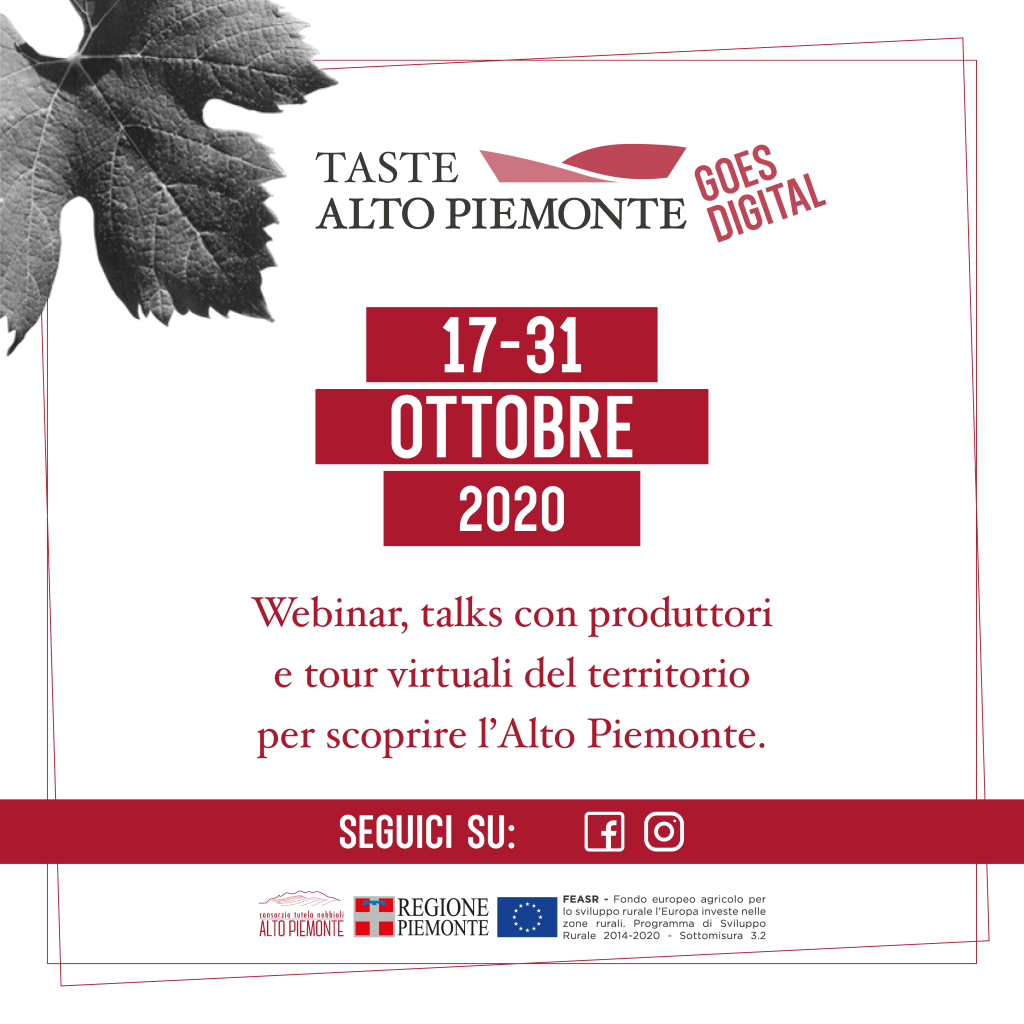 Quattro webinar in collaborazione con AIS Piemonte – Video esclusivi dei produttori che, attraverso le parole, raccontano le aziende e i prodotti. -Possibilità di degustazioni. – Tour virtuali del territorio grazie al supporto delle Atl della Provincia e Camera di Commercio di Novara.