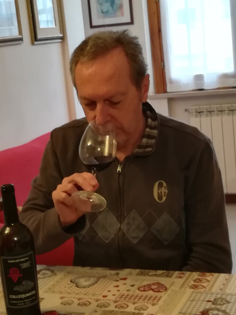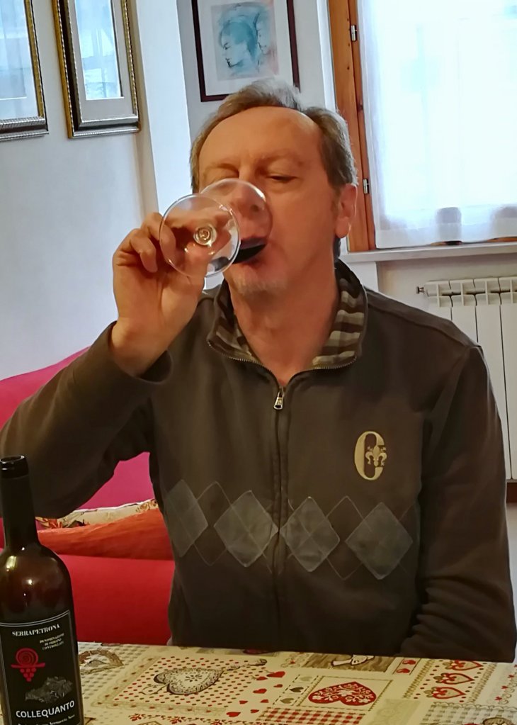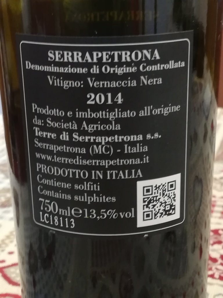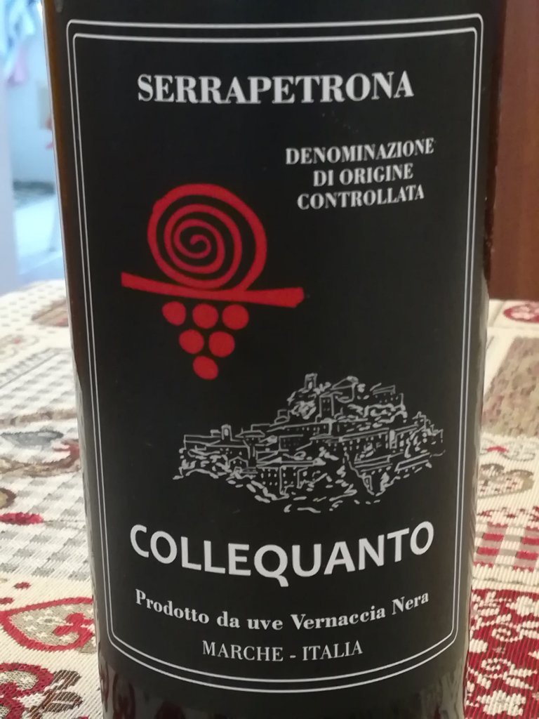 L’azienda vitivinicola Terre di Serrapetrona si trova a poca distanza dal centro abitato del suggestivo Borgo di Serrapetrona, ai piedi del Parco Nazionale dei Monti Sibillini, la tenuta agricola Terre di Serrapetrona vanta 66 ettari di cui circa 20 sono dedicati alla viticoltura. I vigneti sono posti ad un’ altitudine media di 500 metri s.l.m. e fra i filari, il vitigno maggiormente coltivato è l’autoctono Vernaccia Nera, tuttavia viene coltivato anche Pecorino, Sauvignon e Sangiovese. Tutti i vini sono prodotti esclusivamente con le uve dei terreni di proprietà. In questo bellissimo lembo di terra le escursioni termiche tra il giorno e la notte sono notevoli. Il suolo è di origine marnoso-calcareo con argilla bianca. Ho visitato l’azienda il 3 settembre 2020, ho pernottato nell’agriturismo all’interno della proprietà, ove la pace regna sovrana con camera confortevole dalla quale si gode di un panorama di indicibile bellezza digradante verso il lago di Caccamo e i Monti Sibillini. Oggi dopo un tour in bicicletta , a pranzo ho aperto una bottiglia di Collequanto.