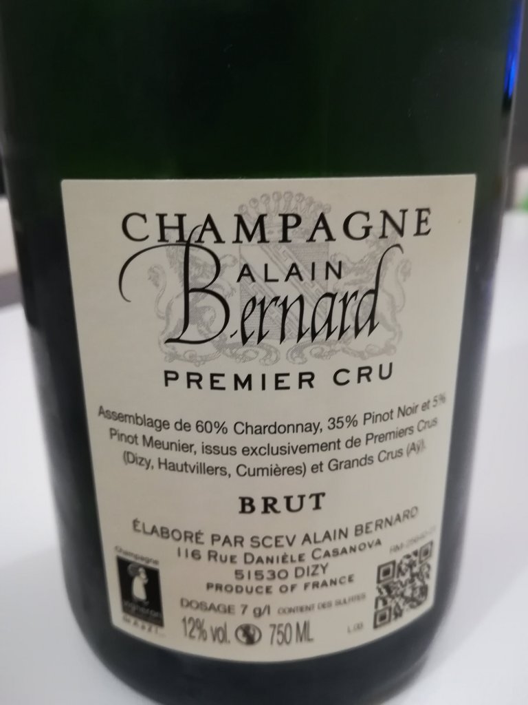La Maison Alain Bernard si trova nel cuore della regione Champagne, a poca distanza dalla graziosa cittadina di Epernay e più precisamente a Dizy nel dipartimento della Marna. Un’ azienda a conduzione familiare che affonda le sue radici nel 1912. Fondata da Arthur Bernard, colui che ha tramandato la sua passione alle generazioni più giovani, uomo dotato di conoscenze di agronomia, anche un grande enologo nonché lavoratore instancabile. Alain prese in mano le redini dell’azienda seguendo gli insegnamenti che il padre gli aveva tramandato , mettendoci lo stesso impegno ed entusiasmo. Oggi al timone dell’azienda ci sono Isabelle e Benoît Bernard, guidati dallo stesso ideale dei loro antenati: produrre un vino Champagne eccezionale. In possesso dei migliori terroir (solo in Premiers e Grands Crus: Aÿ per Grands Crus, Dizy, Hautvillers e Cumières per Premiers Crus, lavorano il terreno nel modo più naturale possibile (inerbimento, aratura, humus, ecc.). La raccolta delle uve come da disciplinare viene eseguita rigorosamente a mano. La Maison Alain Bernard è affiliata alla Federazione Regionale dei Vignaioli Indipendenti di Champagne, con lo scopo di garantire la genuinità dei loro prodotti, non acquistando né vino né uva e nessuna elaborazione in cooperativa. Le cantine sono state scavate interamente a mano da Arthur, le cui temperature sono ideali per la conservazione del vino. La Maison mette a disposizione una buona gamma di vini di varie tipologie. Io mi trovo di fronte al Brut Premier Cru. Buona giornata e Buon Natale.