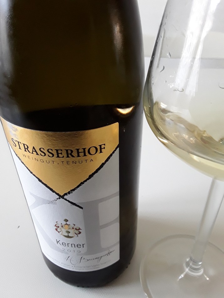 Kerner Alto Adige Valle Isarco Doc 2019 Az. Strasserhof, affina in acciaio per un periodo di 7 mesi, a livello sensoriale: si presenta nel calice con uno splendido colore giallo paglierino luminoso, al naso sprigiona eleganti sentori di pesca, susina, fiori di sambuco e ananas che ben si fondono con note agrumate di pompelmo e leggermente speziate, al palato è piacevolmente fresco, sapido e ben bilanciato con alcool, lungo e duraturo, un vino molto espressivo, fine ed avvolgente. Un gran bel sorso