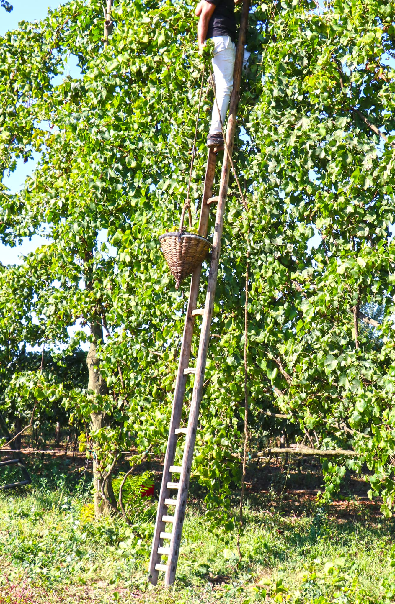 Aversa Asprinio DOC “Civico 44” 2017 – Tenuta Fontana, la fermentazione avviene In acciaio inox a temperatura controllata, l’affinamento in serbatoi di acciaio inox per 6 mesi con permanenza sulle fecce fini, inoltre affina in bottiglia per almeno 2 mesi, a livello sensoriale: si presenta nel calice con una bellissima tonalità giallo dorato brillante, al naso sprigiona eleganti sentori di mela annurca e pesca gialla, note di fiori bianchi, quali fiori d’arancio e cenni di mandorla, seguono poi note agrumate di bergamotto. Al palato è piacevolmente fresco, sapido e ben equilibrato, dotato di una lunga persistenza aromatica. Non ho una grande dimestichezza con questo tipo di vino, da me conosciuto per la sua spiccata vena acidula, da cui prende il nome. Devo dire che è davvero molto gradevole. La sua particolarità nasce dalla tecnica di produzione: vengono appunto utilizzate uve coltivate con il sistema dell’alberata, viti che arrivano sino a 9 metri di altezza.