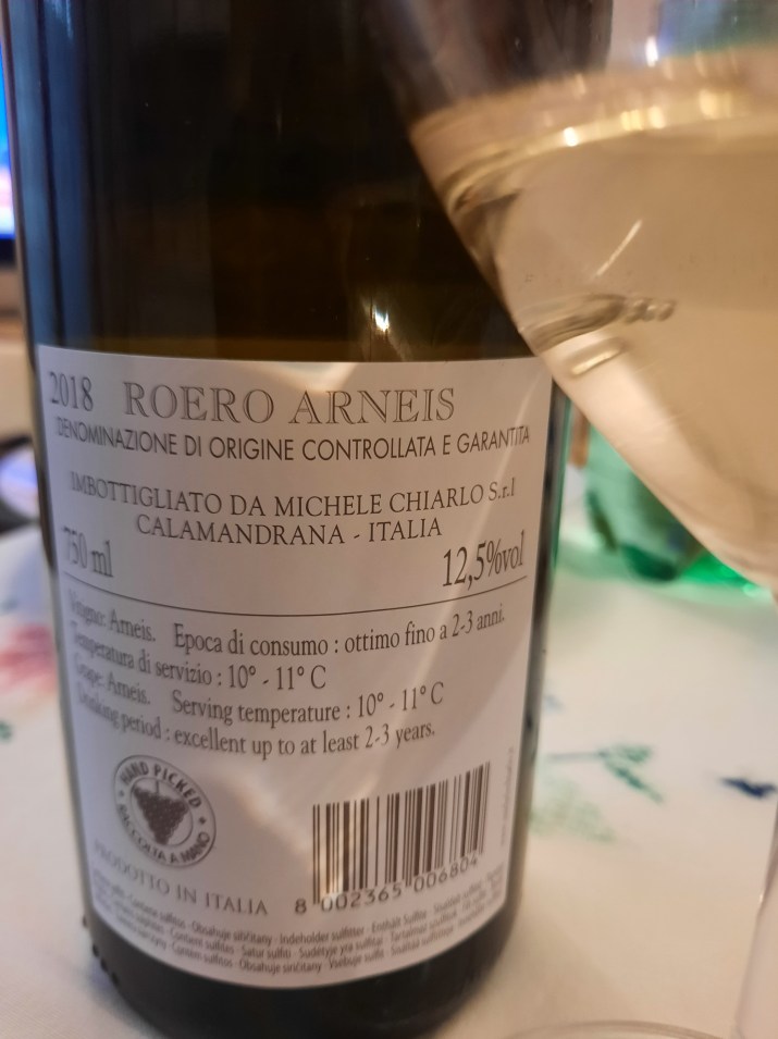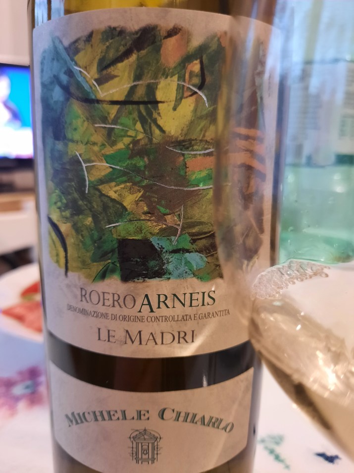 Roero Arneis Docg Le Madri 2018 Az. Michele Chiarlo, ottenuto con 100% di uve Arneis, vinificato con la metodologia della pressatura soffice, seguita da una fermentazione di 15 giorni a 16-18C°, affina per un periodo di 3 mesi in acciaio sulle fecce. A livello sensoriale: si presenta nel calice con una bellissima tonalità giallo paglierino intenso e brillante, all’olfatto dipana eleganti sentori di frutta a polpa gialla con predominanza di note di pesca, frutti tropicali, fiori di acacia, gelsomino, fior d’arancia, impreziositi da note agrumate di kumquat, al palato ha un piacevole attacco fresco, ma al contempo è morbido e dotato di lunga persistenza aromatica, con un piacevole finale sapido. Un vino che ti invoglia ad un calice successivo.