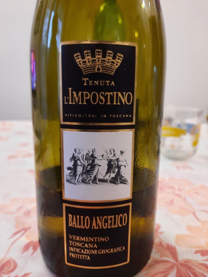 Ballo Angelico Vermentino Toscana Igp 2019 Tenuta L’Impostino, matura per un periodo di 6 mesi in vasche di acciaio inox sulle proprie fecce fini, affina per 2 mesi in bottiglia, la fermentazione malolattica avviene parzialmente in vasche di acciaio inox. A livello sensoriale: si presenta con un bellissimo colore giallo paglierino brillante con riflessi che virano sul verdolino, al naso libera note floreali e fruttate dolci di pesca gialla, melone e nuances di menta piperita e pompelmo. Al palato è piacevolmente fresco e vivace, secco e di corpo, contraddistinto da una buona coerenza gusto-olfattiva. Dotato di una piacevolissima nota minerale, prende slancio per un finale lungo e duraturo.