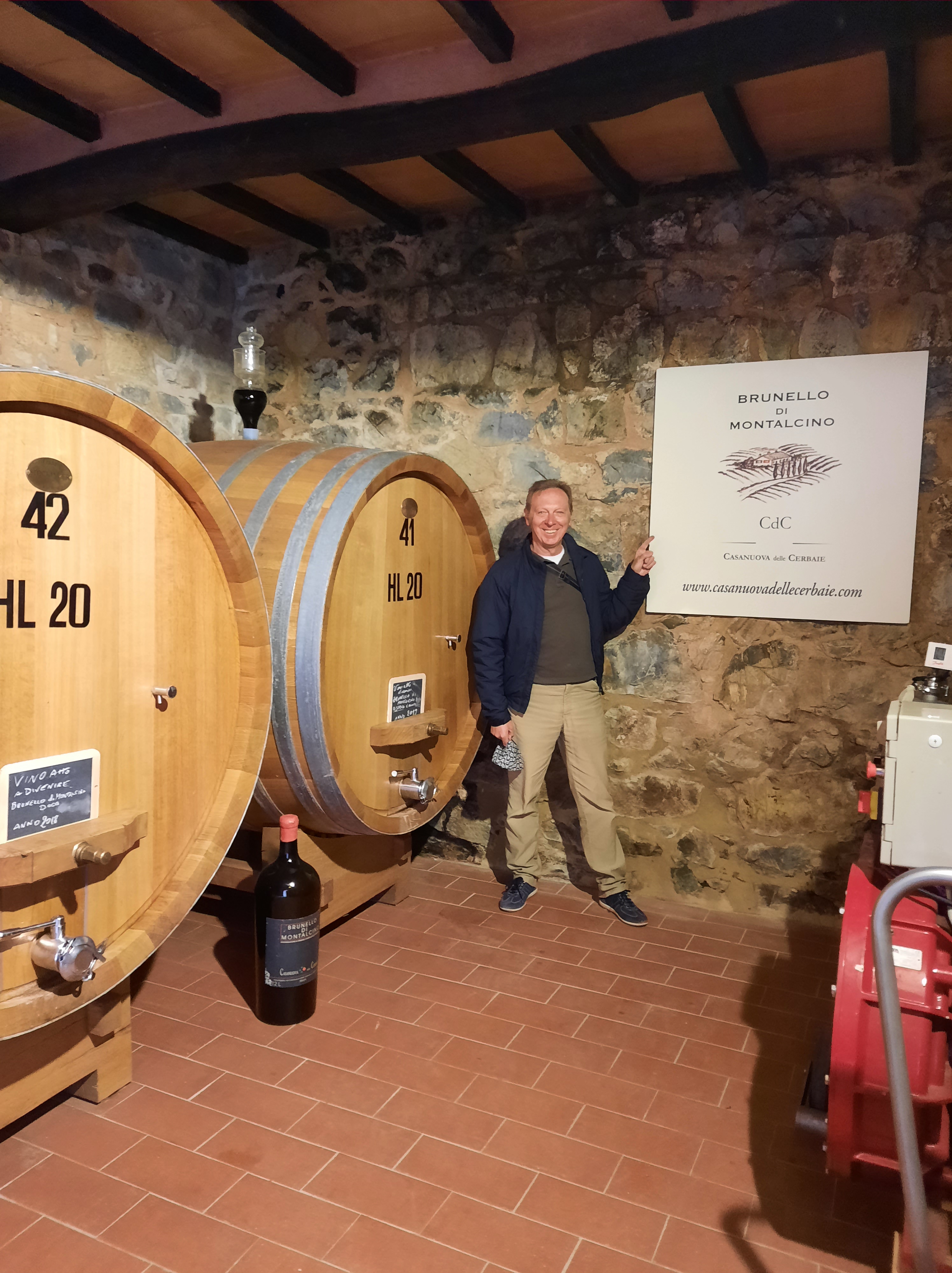 Nell’ iter legato alle visite in azienda oggi è la volta di Casanuova delle Cerbaie. Con amici e colleghi, con i quali condivido la passione per il vino, ci siamo recati oggi a Montalcino, in questa stupenda oasi di tranquillità, nell’ azienda appena menzionata. Ad attenderci Simone Carlotti, il quale con grandissima cordialità e professionalità ci ha illustrato l’ azienda, partendo dai vigneti per arrivare nel reparto vinificazione, per poi passare nella zona élevage dei loro pregiati vini, la visita si è conclusa con la degustazione di un vino Rosato, un Rosso di Montalcino e due Brunello di Montalcino, rispettivamente le annate 2015 e 2016. In una splendida giornata di sole accompagnata da una piacevole ventilazione, oltre a degustare, abbiamo avuto il piacere di commentare i vini , sia con Simone Carlotti che con Alessandro Brigidi e Giacomo Mastretta. Prima di passare all’ analisi sensoriale dei vini, vi darei qualche dettaglio sull’ azienda. In questo meraviglioso lembo di terra, nel 1980 arriva una signora tedesca se ne innamora e da vita a questo progetto che nel 2008 passa le consegne ad un signore di New York, anch’ egli innamorato della Toscana, di Montalcino e del Brunello di Montalcino.