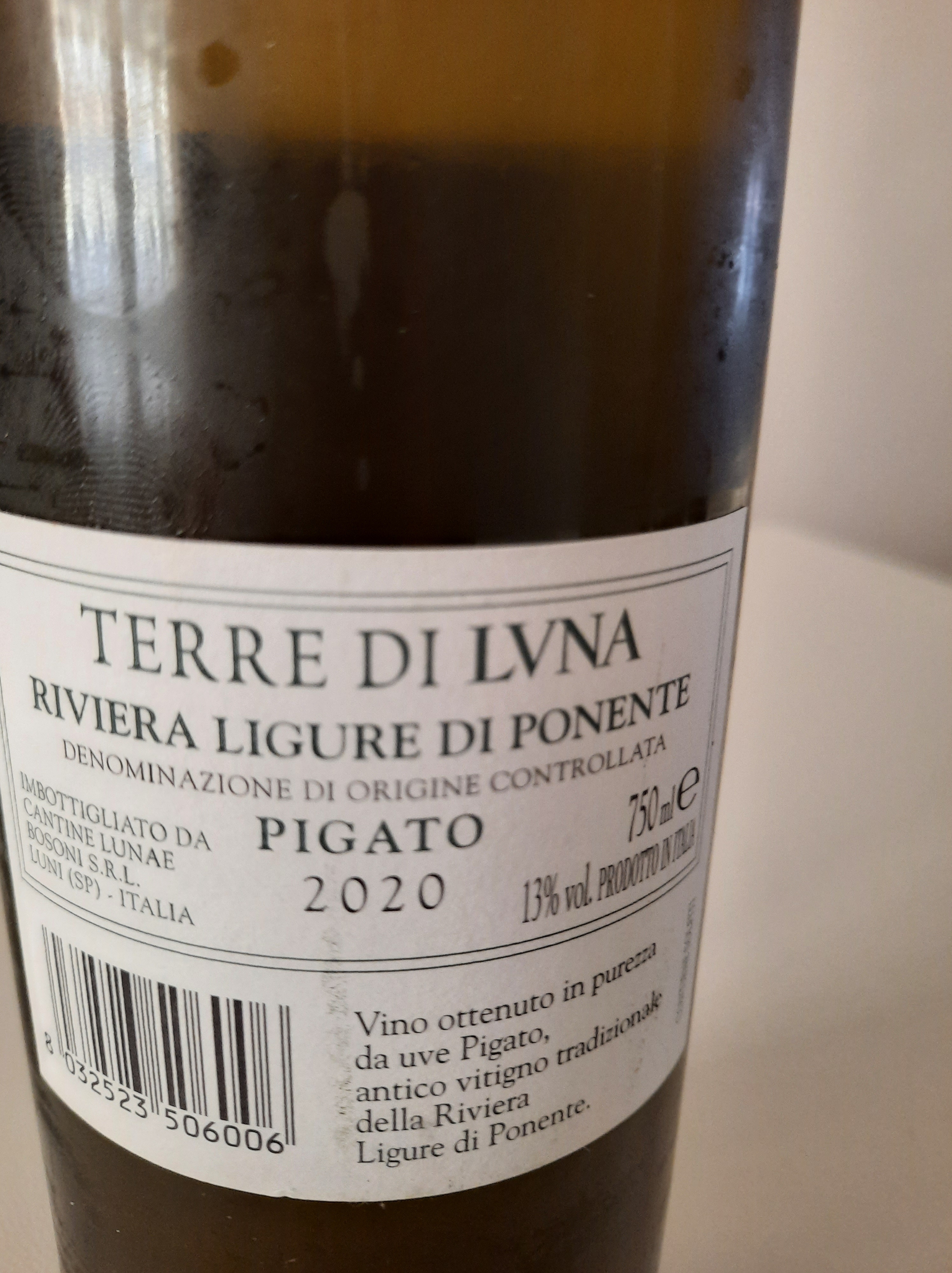Pigato Riviera Ligure di Ponente Doc Az. Lunae 2020 , si presenta nel calice con una bellissima tonalità giallo paglierino con riflessi che virano sul dorato, al naso libera eleganti sentori di pesca, susina, erbe aromatiche, fiori gialli e note di miele d’acacia, al palato è piacevolmente sapido e dotato di una buona vena fresca, un vino persistente ed armonico.