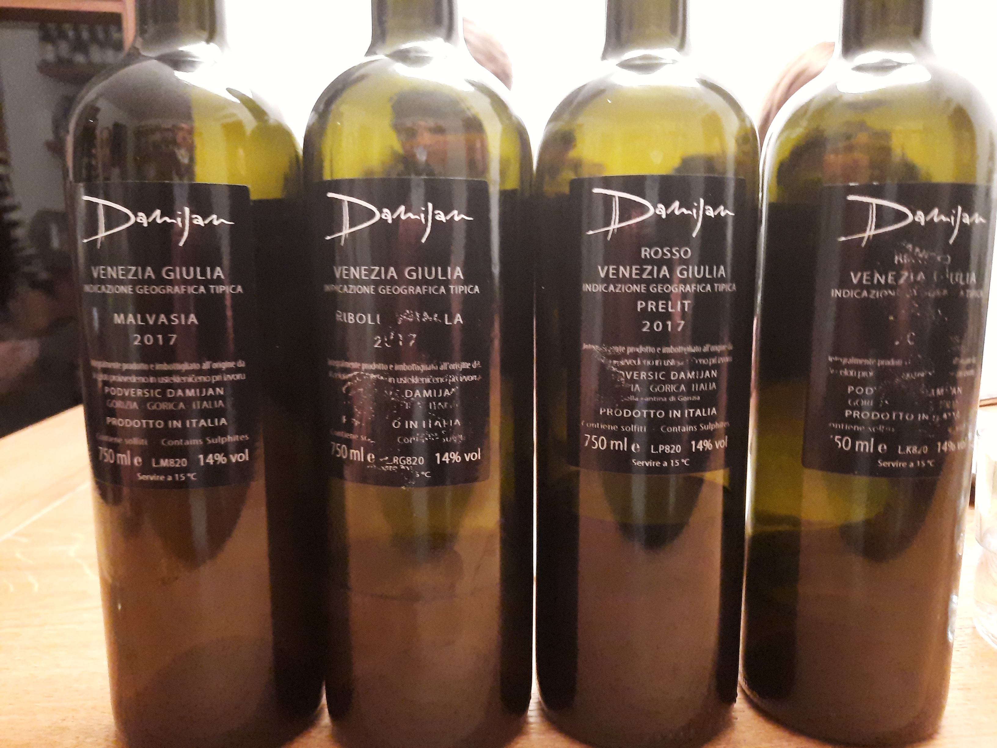 Con amici e colleghi con i quali condivido la passione per il vino, durante il nostro soggiorno a Grado, mi sono recato da Damijan Podversic per una visita in azienda. Luogo davvero incantevole, non facile da raggiungere, infatti il navigatore satellitare non ci aiutava molto, ma una volta arrivati si godeva di un bellissimo panorama digradante verso le colline goriziane con il Monte Calvario alle spalle. La visita è stata guidata dalla figlia Tamara, la quale ha iniziato a raccontarci la storia della famiglia per poi entrare in cantina a degustare alcuni campioni da botte di vari vini, prima di accomodarci in una saletta, ove nel frattempo ci ha raggiunto Damijan per poi proseguire con la degustazione di vini in bottiglia.