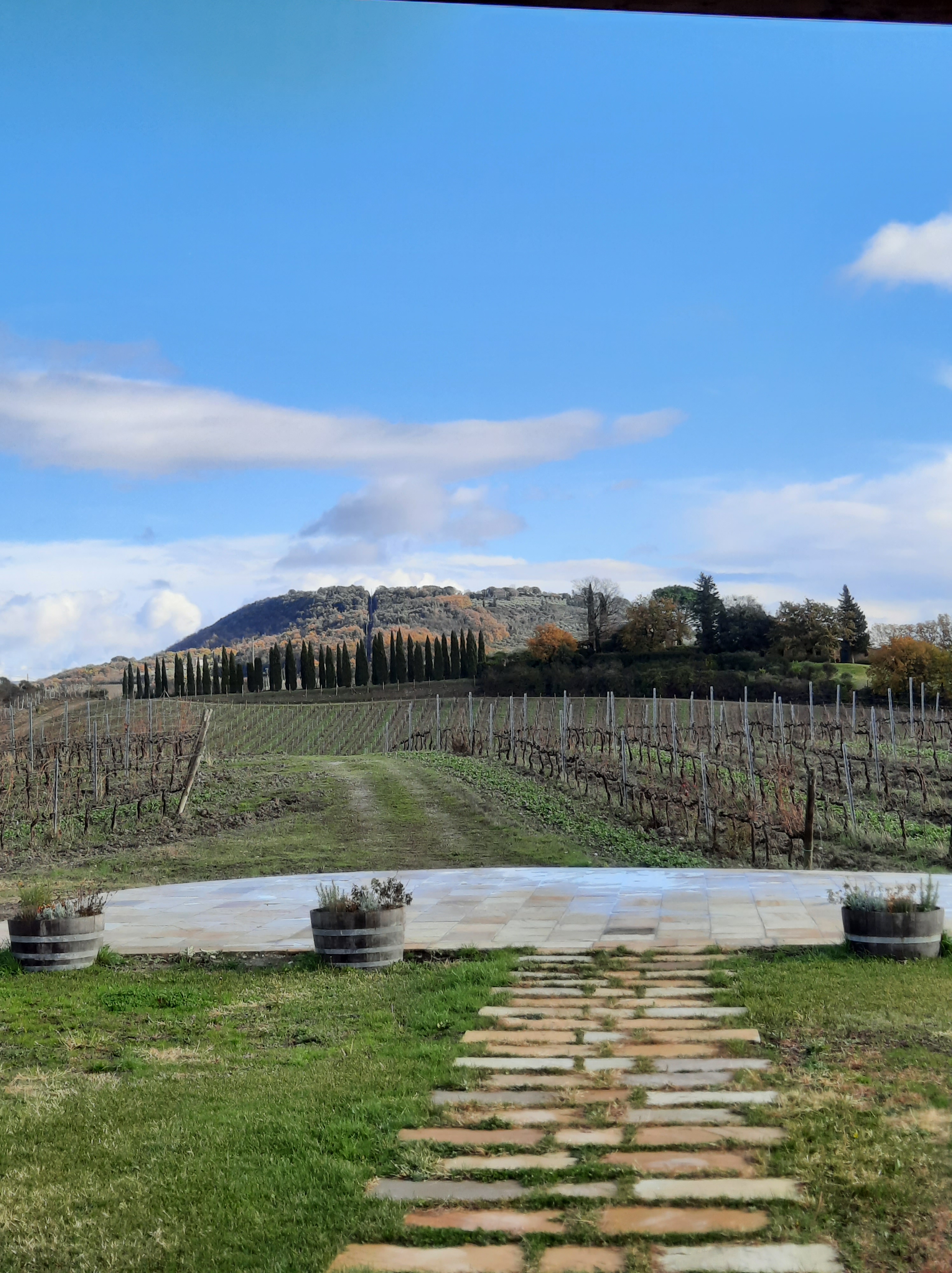 Nell’iter legato alle visite in azienda, oggi è la volta della Fattoria di Camporignano, con l’amico e collega Antonio Caprara mi sono recato in azienda per una visita e degustazione dei loro vini. A riceverci con cordiale accoglienza c’era Nona Dabew, signora molto gentile, professionale, molto preparata e solare, la quale ci ha illustrato la storia dell’azienda e guidato nella degustazione dei vini. Prima della degustazione dei vini, siamo entrati in cantina, siamo poi saliti in un accogliente sala di degustazione, di fronte alla quale si trova una bellissima e panoramica terrazza che ti invoglia a tornare in mesi con temperature meno rigide di oggi.
