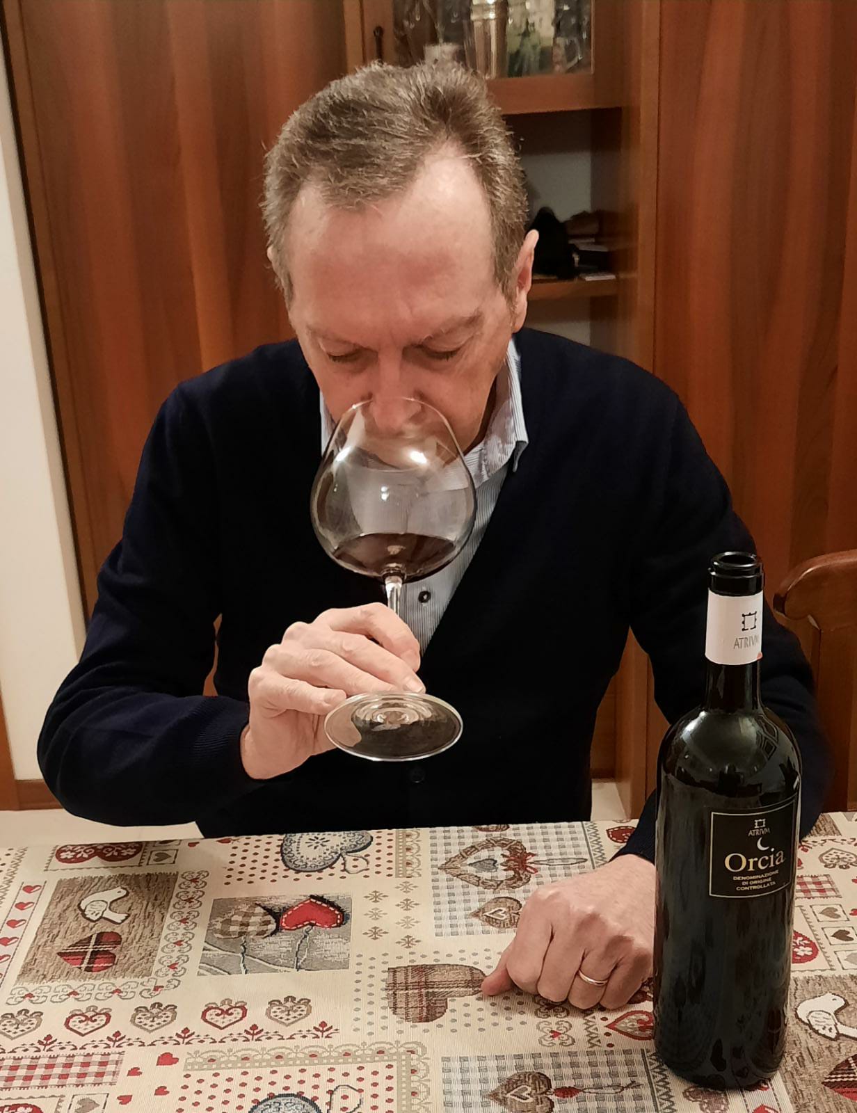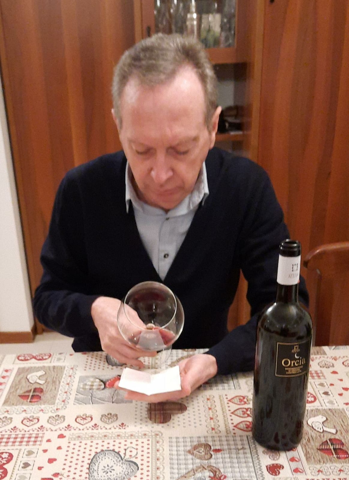Orcia Doc 2018 Az. Atrivm, ottenuto interamente con uve di Sangiovese, maturato per un periodo di 12 mesi in botti di rovere di Slavonia e ulteriori 12 mesi di affinamento in bottiglia; a livello sensoriale: si presenta nel calice con un bellissimo colore rosso rubino intenso, trasparente e consistente; al naso rimanda eleganti sentori di rosa, violetta, ciclamino, prugna, vaniglia e pepe bianco; al palato è piacevolmente fresco e giustamente tannico, un buon impatto morbido e una apprezzabile persistenza, ne fanno un vino armonico. A mio avviso è il compagno ideale di cacciagione, carne arrosto e formaggi stagionati. Ottimo è il rapporto qualità/prezzo.