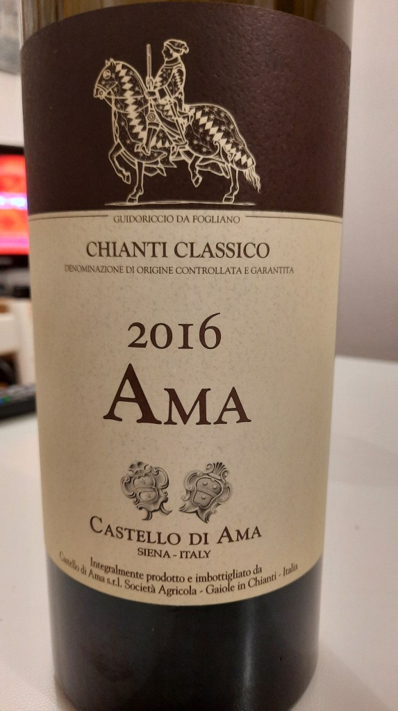 L’ azienda vitivinicola Castello di Ama si trova a 500 metri s.l.m., nel comune di Gaiole in Chianti, tra le suggestive colline senesi, uno dei luoghi più alti nell’intera area del Chianti Classico del versante senese. Nasce negli anni settanta del secolo scorso per merito della famiglia di Lorenza Sebasti e dell’enologo nonchè agronomo Marco Pallanti. La superficie vitata è di circa 89 ettari che si sviluppano in un raggio di 3 Km e suddivisi in 4 meravigliose conche, le quali corrispondono ai nomi di Bellavista, San Lorenzo, La Casuccia e Montebuoni. I vitigni coltivati sono: Sangiovese, Merlot, Chardonnay, Malvasia Nera, Cabernet Franc, Pinot Nero, Malvasia bianca e Trebbiano. Sulle etichette dei loro vini spicca al centro il cavaliere Guidoriccio da Fogliano dipinto da Simone Martini nell’affresco del Palazzo Pubblico di Siena intorno al 1330, tranne per il vino Igt Haiku che si trova spostato sulla parta sinistra. La mia prima visita in azienda risale al 1992 e la seconda è più recente. Ho notato la notevole crescita dell’ azienda, da sempre amo i loro vini, la loro posizione e tutto l’ ambiente è di unica e ineguagliabile bellezza. L’Azienda è molto nota per un vino ottenuto con Merlot in purezza “L’Apparita“, ma qualche anno fa sarà Il Chianti Classico Gran Selezione “San Lorenzo” con l’ annata 2010 ad essere l ‘ unico vino italiano nella Top 10 di Wine Spectator dell’ autorevolissima rivista americana, piazzandosi al sesto posto. Oggi mi sono trovato al cospetto del vino sopra descritto. All you need is wine