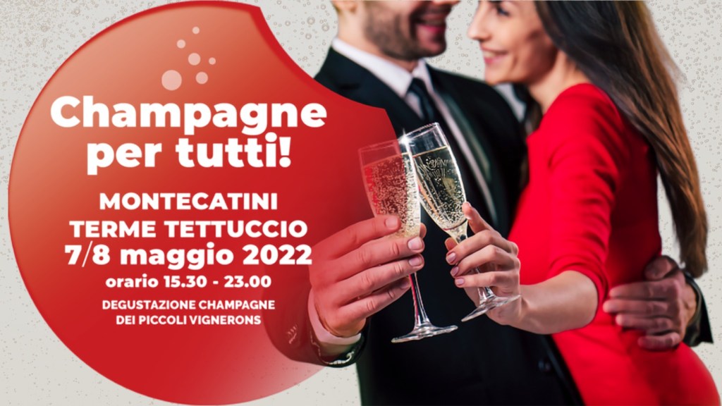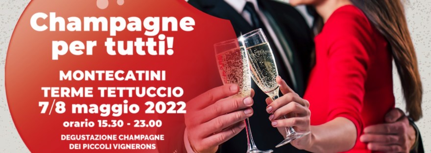 Sabato 7 e Domenica 8 maggio 2022 torna la 4° edizione di “Champagne per Tutti” in una splendida location, quale, le Terme Tettuccio di Montecatini. Saranno due giorni di appassionanti degustazioni dedicate agli Champagne dei piccoli Vignerons. Gli orari di sabato e domenica saranno i seguenti: dalle 15:30 alle 23:00.