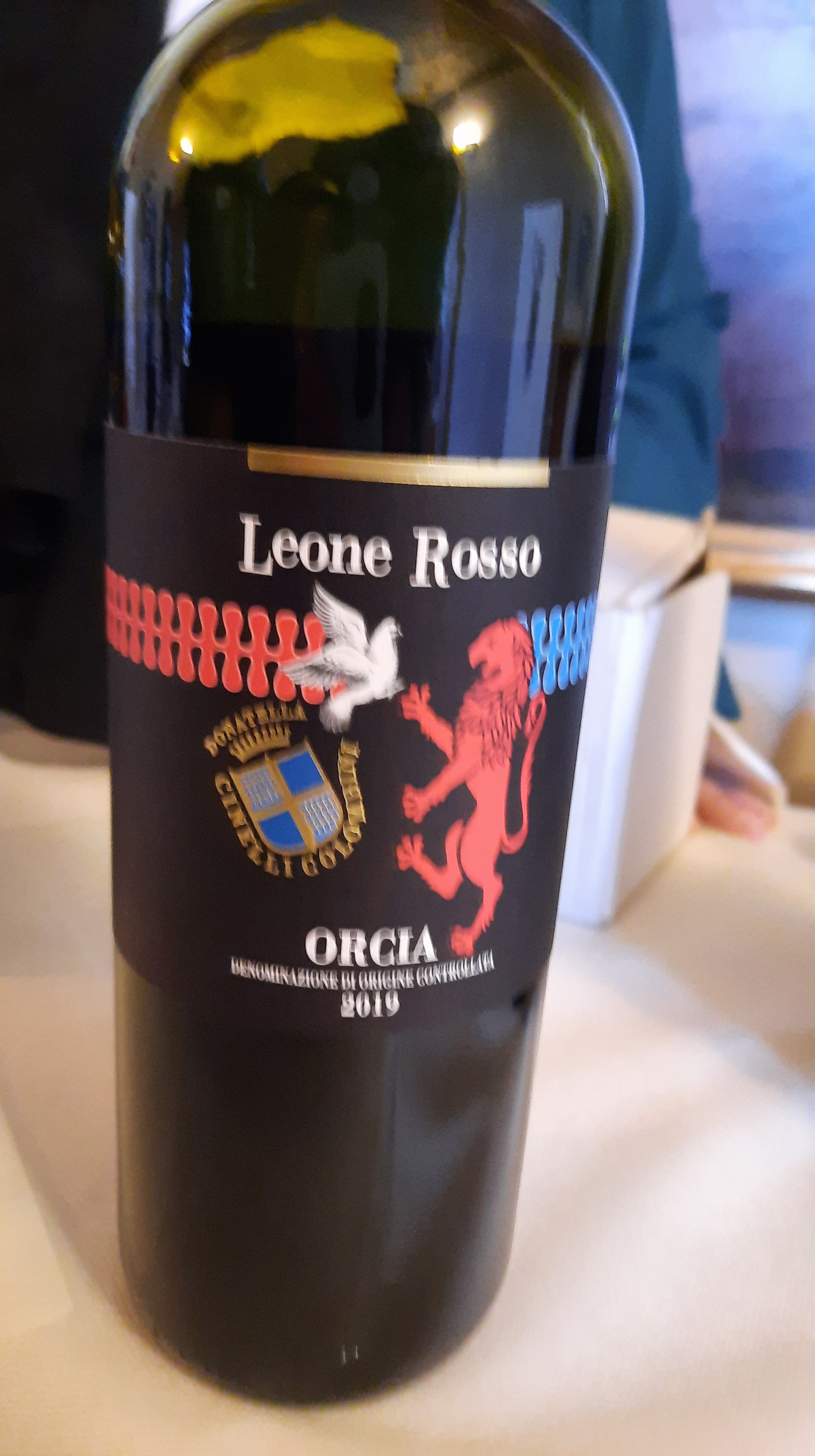 Leone Rosso Orcia Doc 2019, ottenuto con uve di Sangiovese ed un saldo di Merlot, si presenta nel calice con una bellissima tonalità rosso rubino con riflessi violacei, dotato di una buona brillantezza e consistenza; al naso è molto intenso, emergono netti ed eleganti sentori di more, di lamponi di ribes, accompagnati da note di sottobosco e spezie dolci; al palato è molto piacevole e giustamente morbido, ti colpisce per la sua avvolgenza, i suoi tannini setosi e la lunga persistenza aromatica. Un vino ben fatto, equilibrato ed armonico.