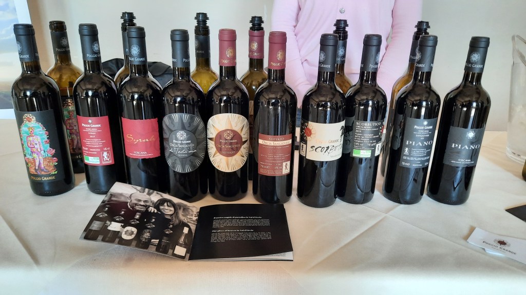 Ho visitato l’azienda per ben due volte e in entrambe le visite, abbiamo trascorso un piacevole pomeriggio conversando e degustando i vini in compagnia di Luca e la figlia Giulitta Zamperini. Una famiglia che ha saputo coniugare bene qualità e dedizione al lavoro nonché passione per questo angolo di Paradiso. Ogni viticoltore fa questo lavoro con tanta passione, Luca e Giulitta lo sanno trasmettere molto bene. Fieri e consapevoli di vivere in un territorio di straordinaria bellezza. Se mi chiedeste qual’è il mio vino preferito, sicuramente il “Tagete”, ottenuto con Marsanne e Roussanne ed il “Sesterzo”, ottenuto con Sangiovese in purezza che prende il suo nome dalla vecchia moneta romana, ritrovata durante lo scasso del terreno per la preparazione del vigneto. Poggio Grande produce anche Di Testa Mia Orcia Sangiovese Riserva, ottenuto interamente con Sangiovese, Scorbutico Orcia Rosso, ottenuto con Sangiovese, Syrah e Cabernet Sauvignon e inoltre last but not least Syrah Igt Toscana, ottenuto con l’omonimo vitigno. Alcune notizie derivano dal loro sito web.