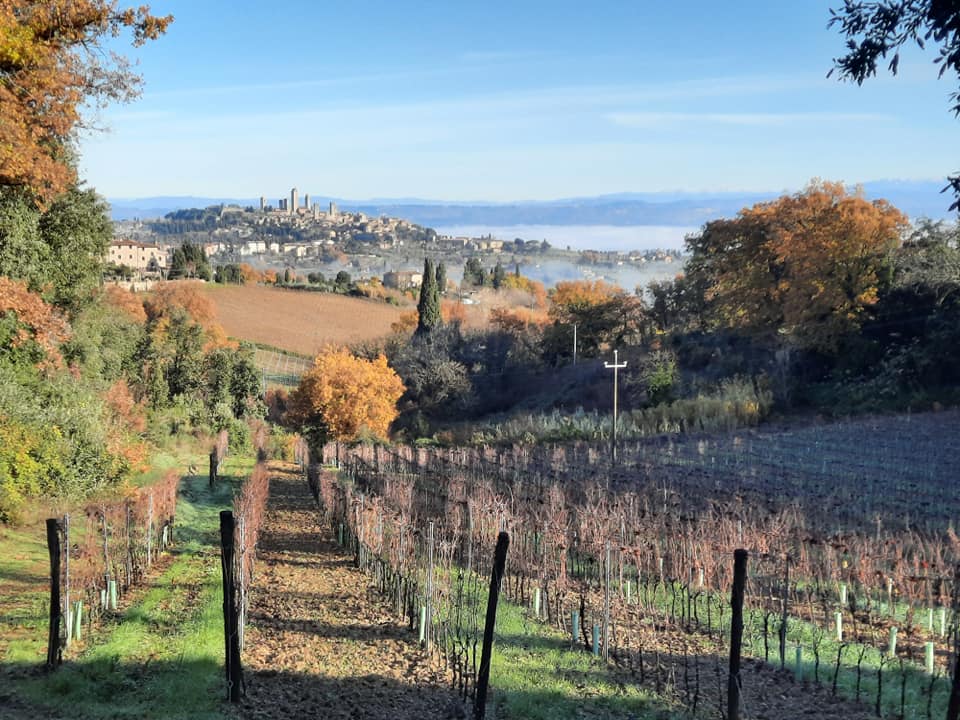 L’azienda vitivinicola Il Palagione si trova a San Gimignano, un antico podere che affonda le proprie radici nel lontano 1594, posto lungo la strada panoramica che collega San Gimignano a Volterra. Una struttura immersa tra meravigliosi vigneti ed oliveti, dalla quale si beneficia di un panorama senza pari sulla città turrita e tutta la vallata. Di proprietà di Giorgio Comotti, come suggerisce il cognome, milanese di origine, il quale insieme alla moglie, decide di lasciare il mondo industriale e di trasferirsi con la famiglia in Toscana. Fortemente innamorato della Toscana, con una grande passione per il vino. I vigneti vengono condotti con agricoltura biologica e tra i filari i vitigni coltivati sono Vernaccia di San Gimignano e Sangiovese. I vigneti sono posti ad un’altimetria media di 320 metri s.l.m.. L’azienda si estende su una superficie complessiva di 40 ettari, di cui 10 sono dedicati a vigneti e 3 a oliveti.