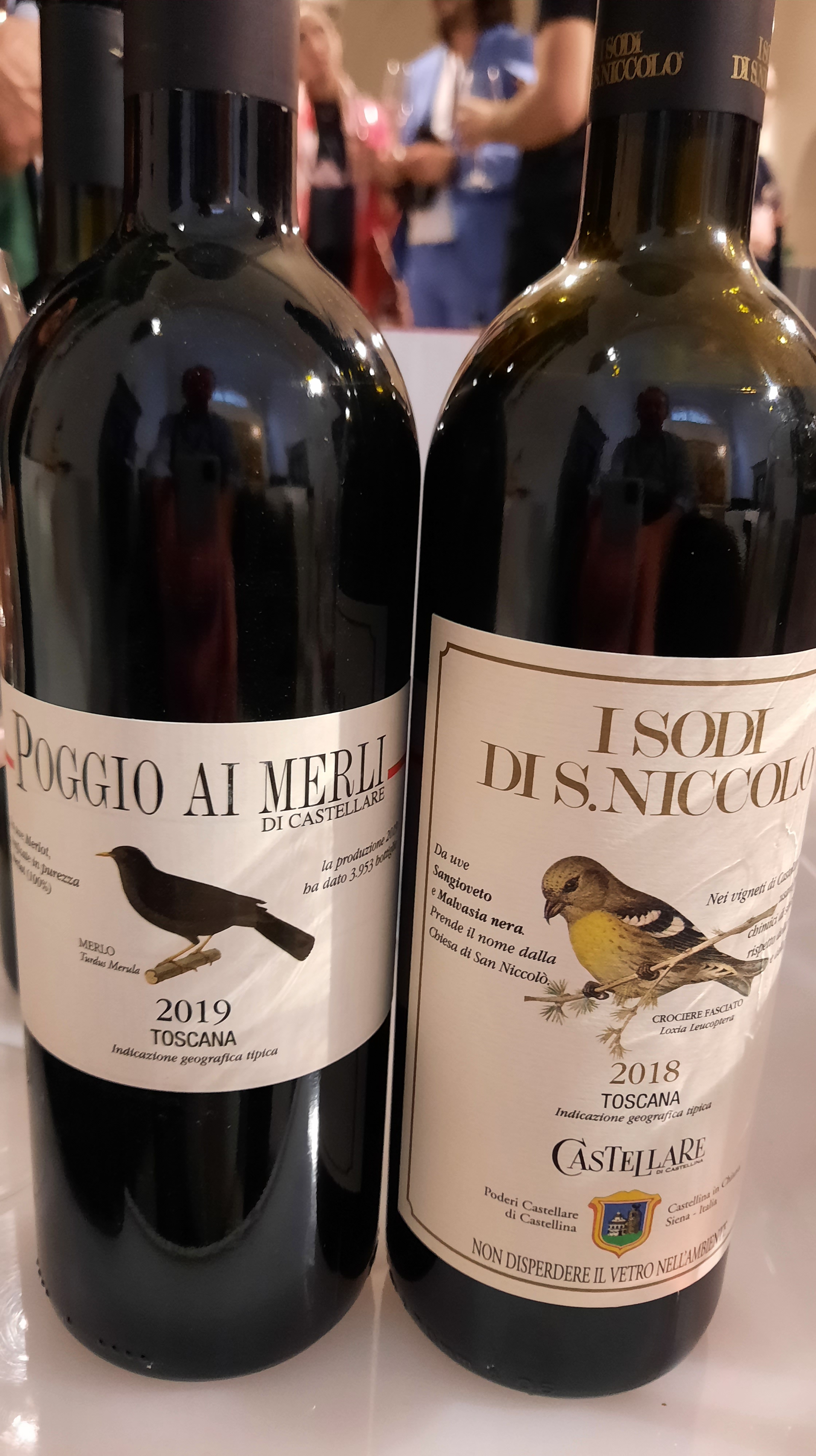 La Cantina Castellare di Castellina si trova nel cuore del Chianti Classico e come suggerisce il nome, nel Comune di Castellina in Chianti in provincia di Siena. Nasce dall’unione di quattro poderi (Castellare, Caselle, San Niccolò e Le Case). Dal 1970 vengono prodotti vini di elevata qualità con rese delle uve per ettaro molte più basse da quelle previste dal disciplinare Docg. Di proprietà di Paolo Panerai che si è avvalso sin da subito della preziosa collaborazione dell’agronomo ed enologo Alessandro Cellai. Gli ettari vitati sono 33 estesi su una superficie complessiva di 80, la cui esposizione è a sud-est su terreni ricchi di calcare, galestro e poca argilla ad un altimetria media di 370 metri s.l.m.. Da sempre vengono valorizzati i due vitigni autoctoni come Sangiovese e Malvasia Nera, tuttavia tra i filari vengono coltivati anche altri vitigni sia autoctoni che alloctoni. La coltivazione è di tipo biologico per rispetto della natura e per dare origine a vini organici. Le singolari etichette sono note per la riproduzione di uccelli in via d’estinzione. Conosco i vini dell’azienda da quasi mezzo secolo e ogniqualvolta partecipo a kermesse enoiche mi piace degustare i loro vini.