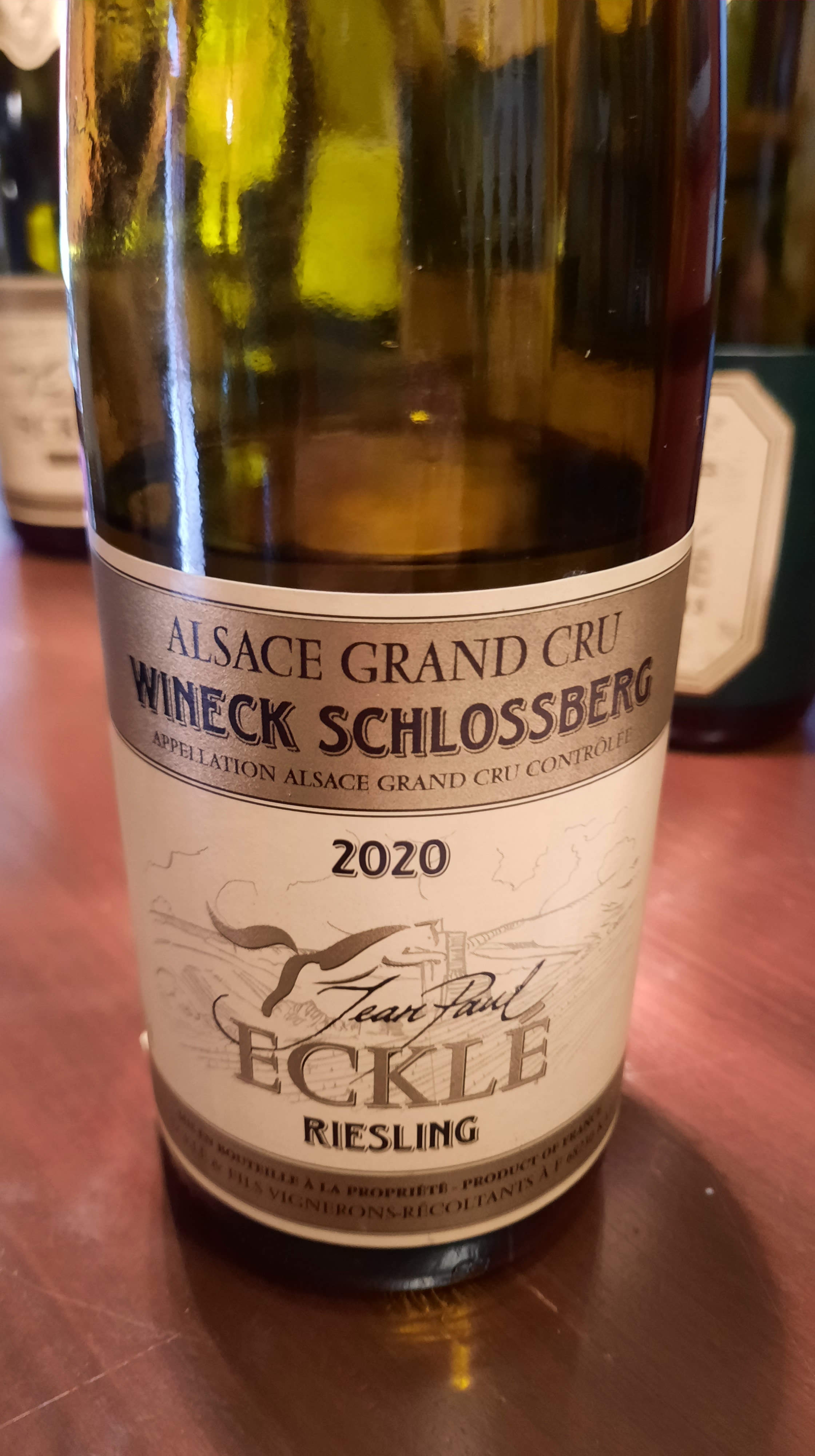 L’azienda vitivinicola Domaine Eckle Jean-Paul & Fils è un’azienda familiare, posta a Katzenthal, piccolo e tranquillo villaggio a poca distanza dalla capitale del vino: Colmar. Fondata nel 1870 da Joseph Eckle, da allora si sono succedute 5 generazioni di viticoltori. Vanta oggi 9,5 ettari di vigneti esclusivamente di denominazione Alsace Contrôlée, tra cui il prestigioso Grand Cru ”Wineck Schlossberg”. I vigneti sono posti ad un’altimetria che varia dai 100 ai 400 metri s.l.m. e si trovano nelle immediate vicinanze della Cantina. I suoli sono prevalentemente composti da materiale granitico. La raccolta delle uve viene effettuata rigorosamente a mano e viene praticata un’ agricoltura molto rispettosa per l’ambiente con certificazione H.V.E. (Haute Valeur Environnementale). Tra I filari vengono coltivati il Riesling, il Sylvaner, il Gewürztraminer, il Pinot Grigio, il Pinot Bianco, il Muscat, lo Chasselas ed il Pinot Nero. Oltre ai vini prodotti dai vitigni menzionati, il Domaine produce anche l’Edelzwicker (vino bianco ottenuto con l’assemblaggio di vari vitigni) ed il Crémant d’Alsace Bianco e Rosè con dosaggi “Brut”. Le rese per ettaro sono basse e l’ elevata qualità dei vini si riscontra nel calice.