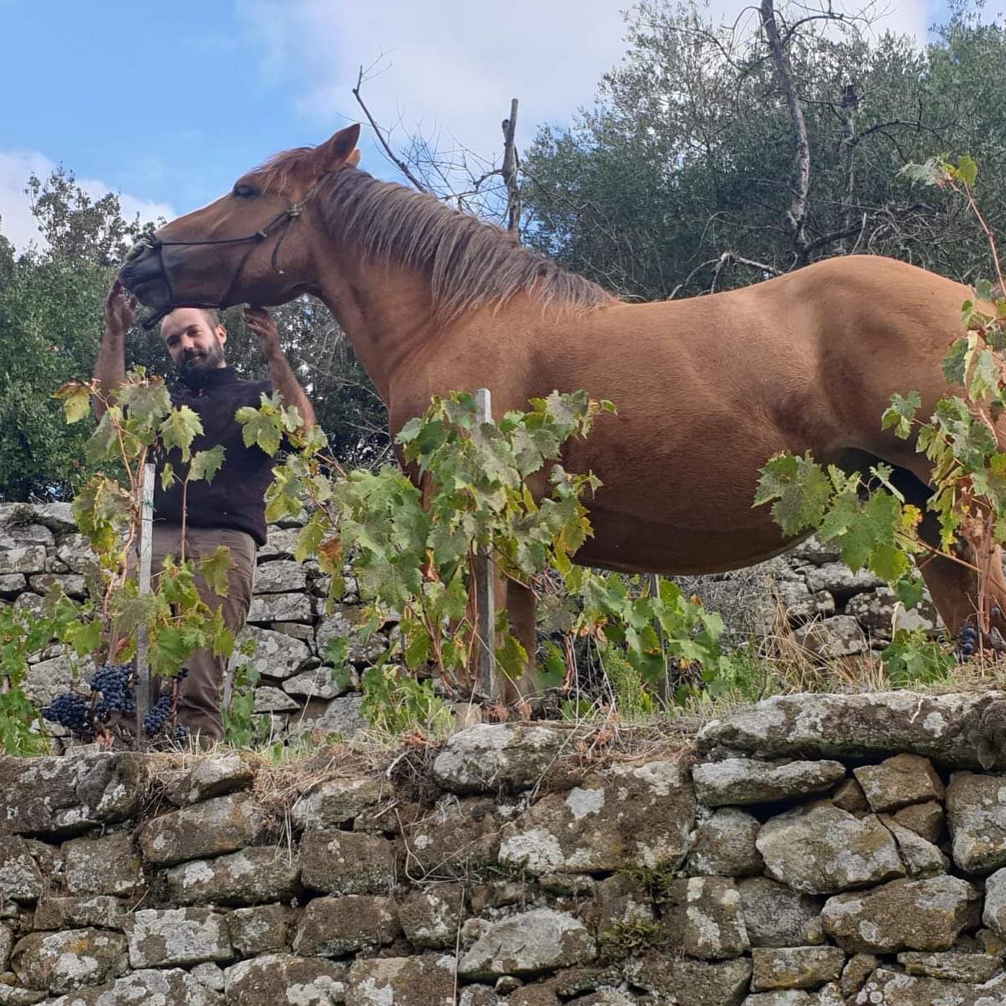L’ Aietta è una piccola-grande azienda vitivinicola posta a pochi passi dalla Fortezza di Montalcino. Patria del Brunello e del Rosso di Montalcino. Fondata nel 2001 dal giovane e dinamico Francesco Mulinari. Volutamente non ha geolocalizzato la posizione, e se ti rechi in azienda, comprendi anche il motivo. Qui un vigneto ad alberello libero, posto in un declivo con 110 metri di dislivello tra la prima vite in alto e l’ultima in basso, se pensi allo sci, potrebbe essere un muretto in una pista classificata nera. Un piccolo appezzamento di terreno, ricco di sabbia. Un habitat naturale avviluppato da erbe spontanee, bosco e muretti, ove non è possibile andare con mezzi meccanici, infatti Francesco si avvale del prezioso aiuto del cavallo. Il Sangiovese dopo alcuni anni è riuscito ad adattarsi alle avversità meteorologiche, alle estati siccitose, agli inverni rigidi e a dialogare con Francesco. In questo fazzoletto di terra si possono verificare alcune fallanze da parte della vite a causa della flavescenza dorata. Tuttavia, Francesco con il sistema a propaggine, ridà vita a nuove barbatelle che solo dopo tre anni vengono separate dalla vite madre, tutto ciò è possibile grazie al suolo sabbioso.