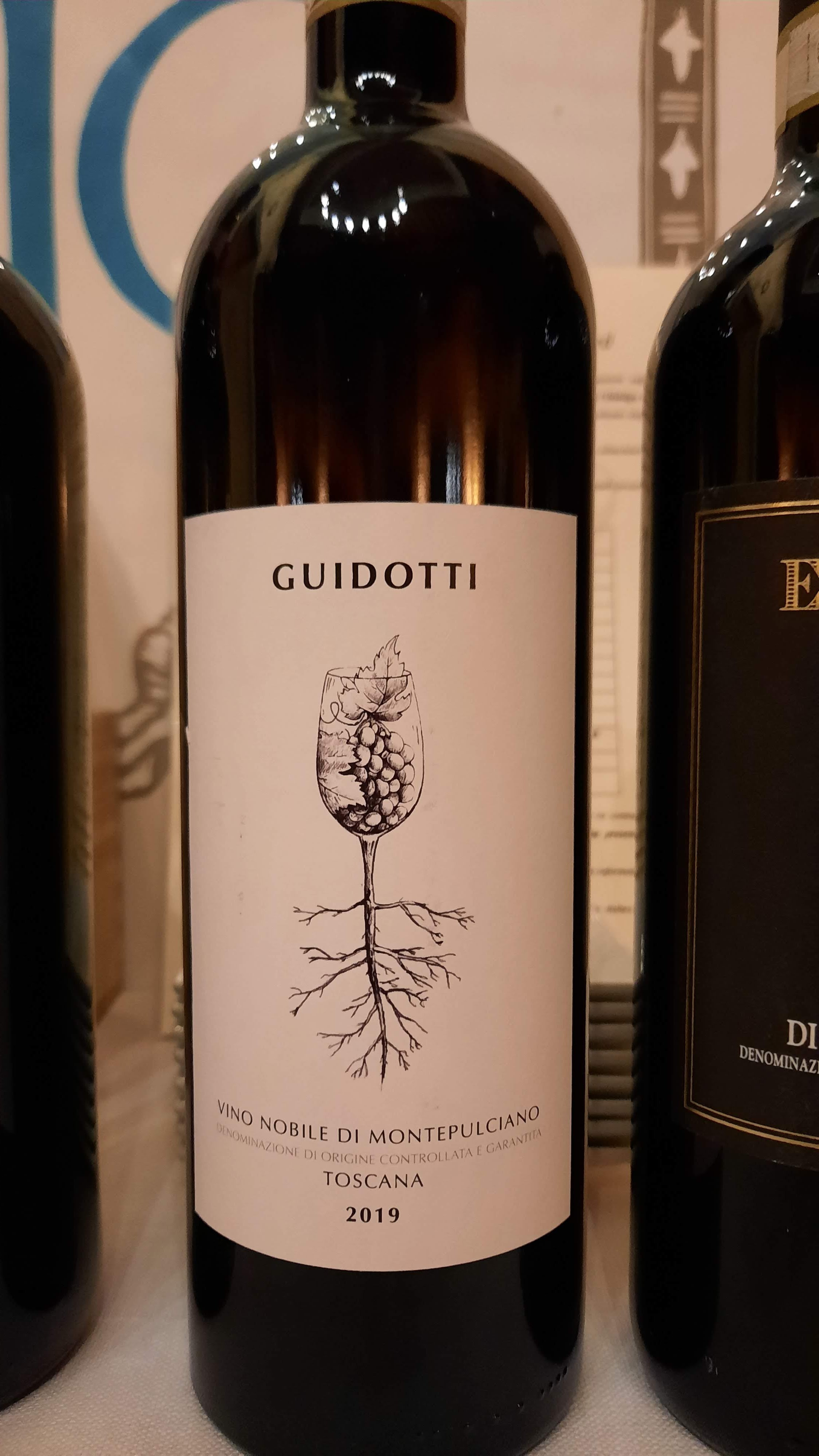Vino Nobile di Montepulciano 2019 Az. Guidotti, si presenta nel calice con un bellissimo colore rosso rubino vivace, al naso sprigiona eleganti sentori di mammola, ciclamino, lampone e prugna che seguono note di cannella e liquirizia, al palato è pieno e avvolgente e assolutamente persistente.