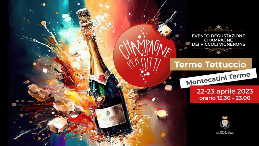 Sabato 22 e Domenica 23 aprile 2023 torna la 5° edizione di “Champagne per Tutti” in una splendida location, quale, le Terme Tettuccio di Montecatini Terme. Saranno due giorni di appassionanti degustazioni dedicate agli champagnes di piccoli Vignerons. Gli orari di sabato e domenica saranno i seguenti: dalle 15:30 alle 23:00.