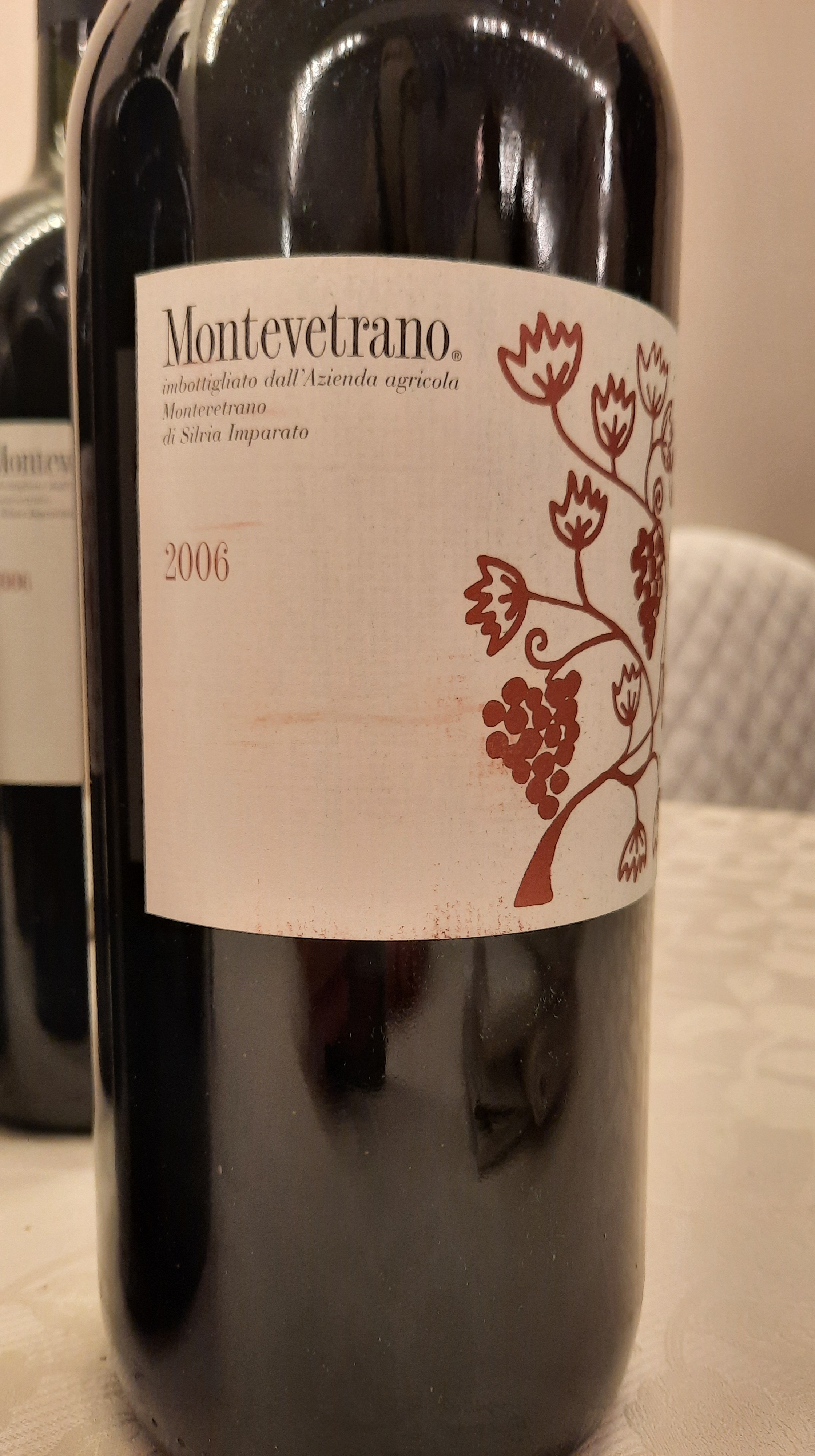 Montevetrano Colli di Salerno Igt 2006, rosso rubino intenso, anch’esso con sfumature granata, al naso dipana eleganti sentori di frutta matura, pot pourri di fiori, cacao in polvere, torrefazione che vanno a seguire una scia balsamica e speziata, al palato è piacevolmente tannico, sapido e dotato di una lunga persistenza aromatica. Inizialmente un po’ ritroso, ma quando si concede è delizioso.