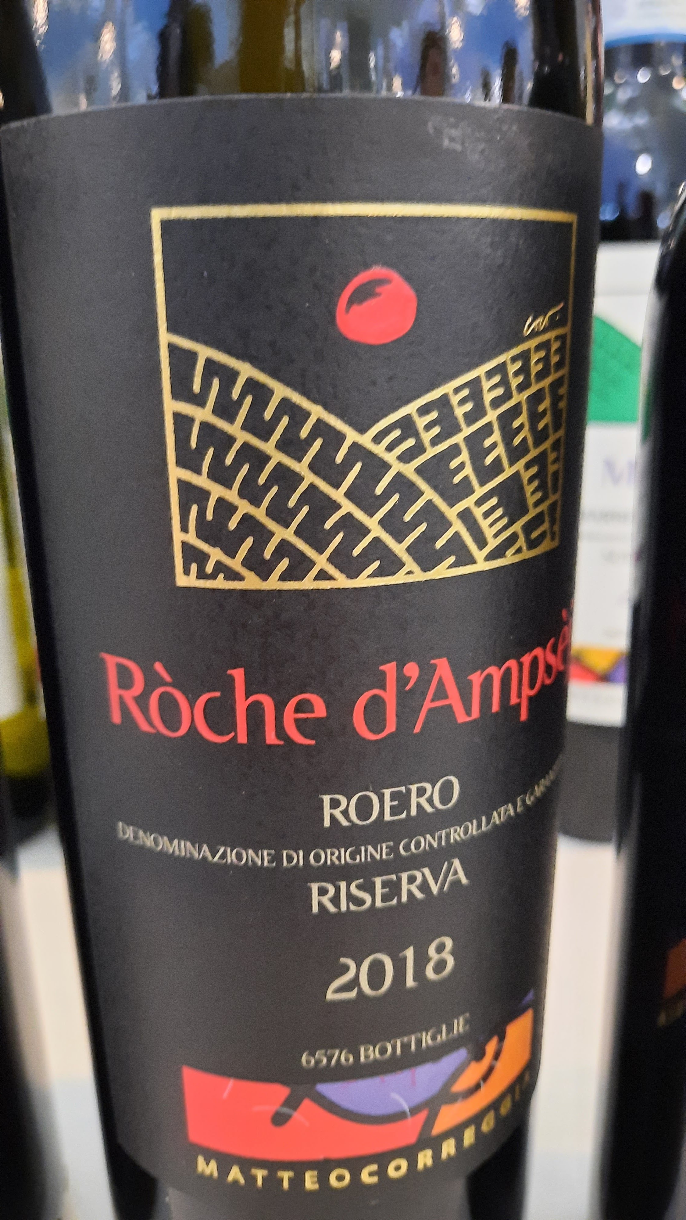 Roche d’ Ampsej Roero Docg Riserva 2018, ottenuto interamente con uve di Nebbiolo, rosso rubino con riflessi tendenti al granato, al naso dipana sentori di rosa, ciclamino, mirtillo e prugna accompagnate da note di cannella e pepe, al palato è pieno e morbido, la trama tannica è nobile ed il vino rimane in bocca a lungo.
