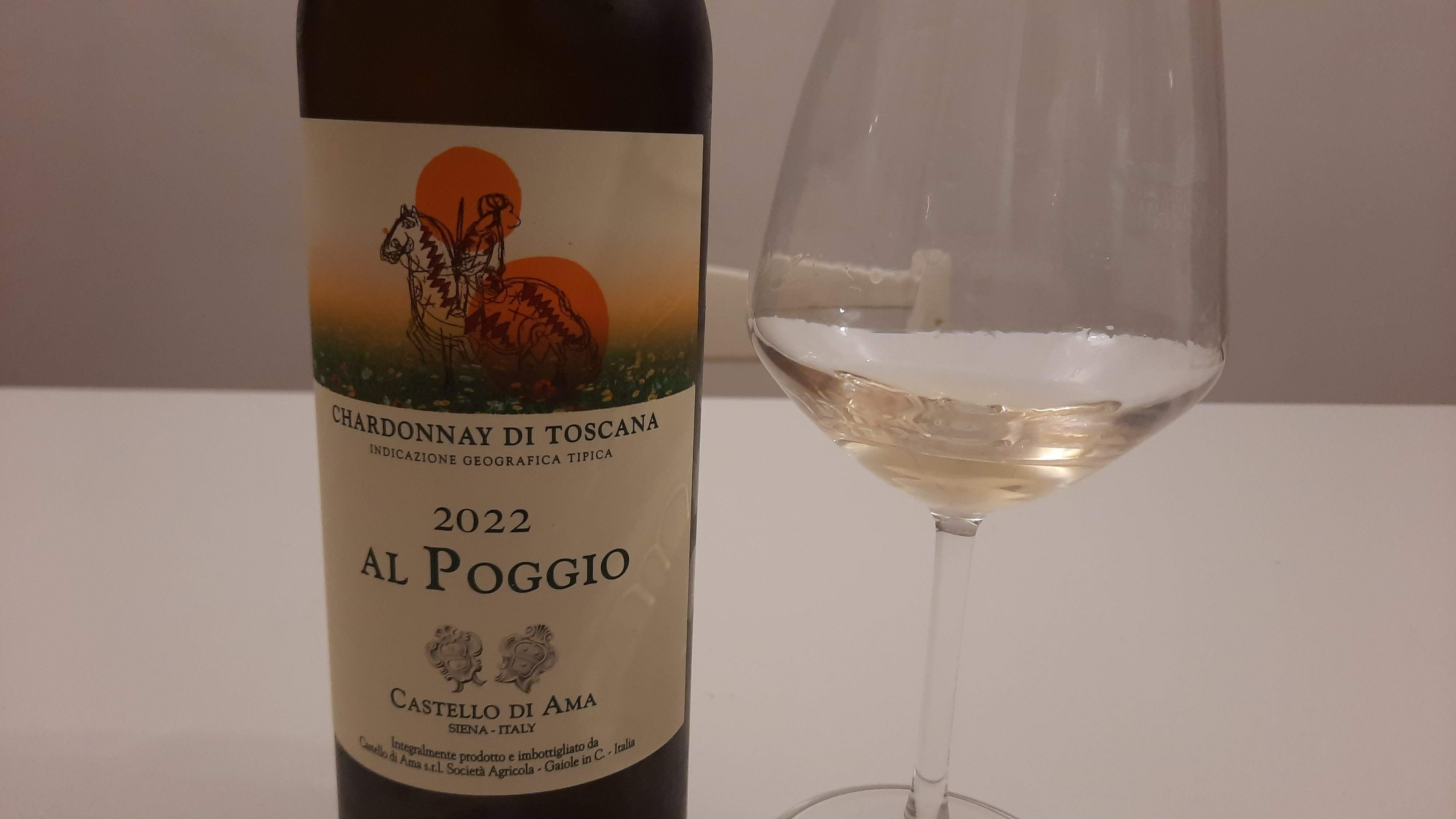 Chardonnay di Toscana Igt Al Poggio 2022 Castello di Ama, ottenuto interamente da uve di Chardonnay. Le uve dopo essere state pressate, fermentano in acciaio per il 60% del mosto e in barrique di Troncais e Allier, metà nuove e metà di 1 anno, per il 40%, di cui poco più della metà macera sulle uve per 12 ore. Il vino in barrique svolge la malolattica. Affina per un periodo di 8 mesi sui lieviti in acciaio per il 60% e in barrique per il 40%. A livello sensoriale: si presenta nel calice con una bellissima tonalità giallo dorato brillante, al naso libera raffinati sentori di pesca, ananas, banana, scorza d’ arancia, impreziositi da note di frutta candita, nocciola e mughetto, al gusto è piacevolmente morbido con buona spalla fresca e vena sapida. Caratterizzato da un finale lungo e duraturo.