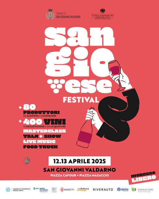 Nel suggestivo centro storico di San Giovanni Valdarno, il 𝟭𝟮 𝗲 𝟭𝟯 𝗔𝗽𝗿𝗶𝗹𝗲 2025 avrà luogo la seconda edizione del Sangiovese Festival. Una fiera mercato dedicata al vitigno principe e fiore all’occhiello dell’enologia italiana, uno dei più amati che dà origine a grandi vini rossi, soprattutto nel cento Italia.