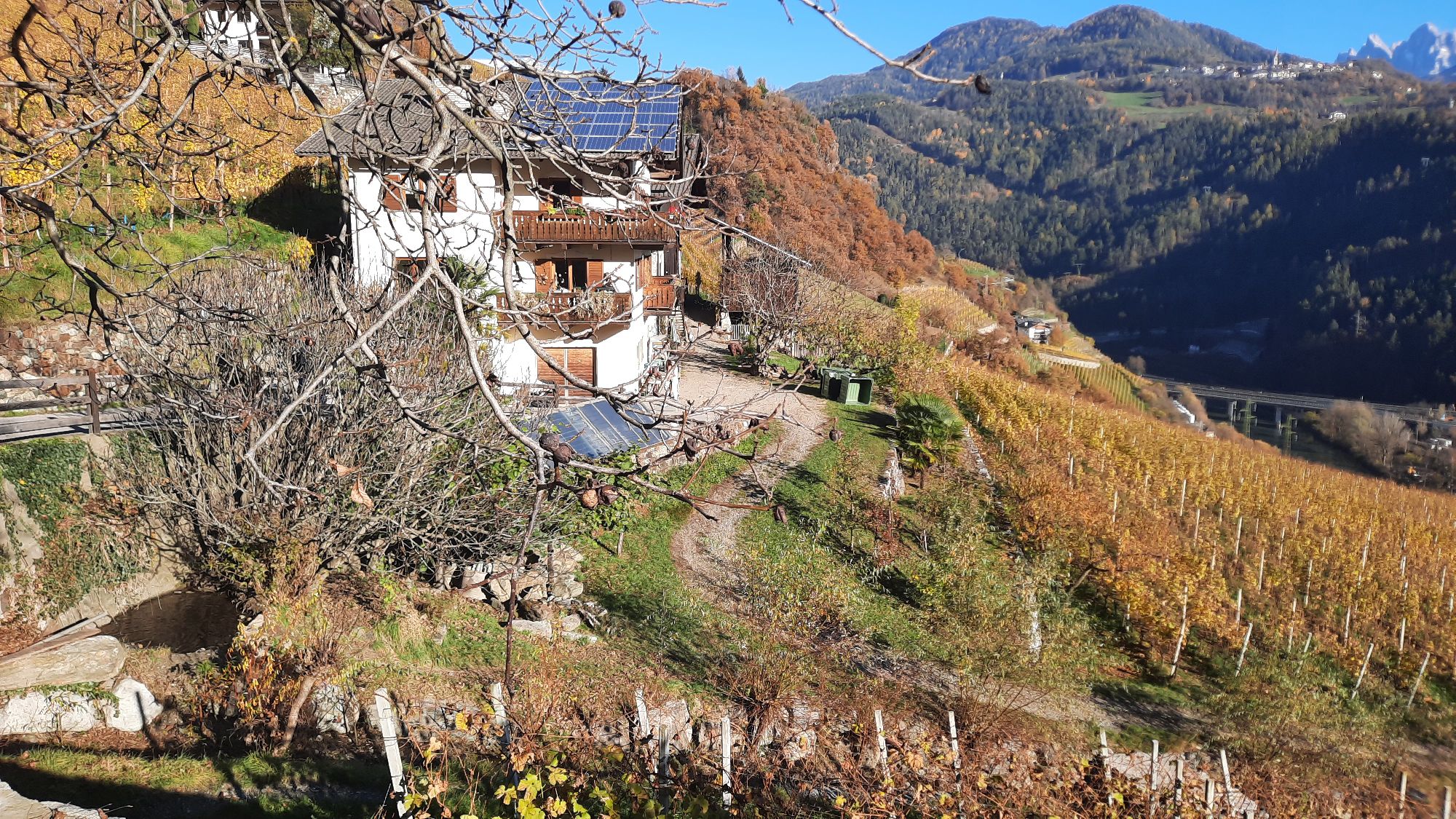 Christian cerca di lasciare intatte le caratteristiche dell’uva e di evitare il più possibile di stravolgere il vino durante la vinificazione, in modo da poterne riconoscere il più possibile le peculiarità del territorio. L’ azienda si affaccia sulla Valle d’Isarco con un panorama mozzafiato. La cantina è piccola, ma funzionale, ben rapportata agli ettari di vigne, i lieviti utilizzati sono autoctoni. Dalla sala degustazione, si beneficia di un suggestivo scorcio sulla montagna prospiciente, come potete vedere nelle immagini.