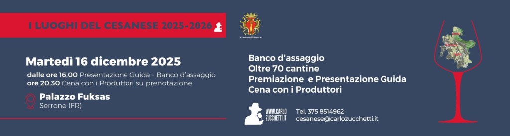 | 12-12-2025 Presentazione, Premiazione e Cena. La guida I Luoghi del Cesanese 2025-2026a Serrone il 16 dicembre 2025 Una grande festa per il Cesanese a Serrone. Alle 16,30 premiazione e degustazione dei vini della guida I Luoghi del Cesanese 2025-2026 a Palazzo Fuksas poi una cena imperdibile al ristorante San Michele. Una giornata dedicata al Cesanese, ai suoi territori e ai suoi vignaioli. Quest’anno sarà Serrone ad ospitare la presentazione e premiazione della VI edizione della guida I Luoghi del Cesanese curata da Carlo Zucchetti, Pasquale Pace, Extrawine a Palazzo Fuksas, l’evento proseguirà con una cena a più mani al Ristorante Il San Michele con la proposta di un menu che esalta la produzione del territorio.Il menu Rustico dello Scalambra Prosciutto Cotto con miele millefiori ed erbette di montagna Formaggio ‘mbriaco di latte vaccino e ovino con affinamento nelle vinacce del Cesanese Norcineria Gastronomia Minori Una storia lunga oltre 100 anni e la freschezza di una passione che si rinnova di generazione in generazione. La carne proviene da allevamenti all’aperto condotti guardando al benessere animale. La produzione artigianale di salumi segue le antiche ricette e i segreti della stagionatura tramandati in famiglia. Via Prenestina, 306 – La Forma Serrone (FR) Mortadella Artigianale con vino Cesanese Bottega del Macellaio Roberto Cedrone La bottega nasce dal desiderio di far conoscere tutto il buono della Ciociaria. Diventa basilare la scelta di puntare sulle razze storiche e la possibilità di instaurare rapporti diretti con gli allevatori locali per avere certezza dei metodi di allevamento. Nel piccolo laboratorio artigianale si lavorano salumi con metodi tradizionali. Via Calcatina, snc – Casalvieri (FR) Patacche al ragout di pecora Ristorante Il San Michele Nel centro storico di Serrone, con una vista mozzafiato, è una realtà articolata: ristorante, pizzeria con forno a legna e l’enoteca “La Cesaneseria” dove degustare le migliori etichette nazionali ed internazionali e una vasta scelta di vini del territorio. Profondamente legata al territorio anche la proposta del menu. Viale Pio XII, 23 – Serrone (FR) Guancia di bovino brasata al Cesanese, verdure di cottura e maionese alle nocciole Ristorante Il Boschetto Luogo curato e accogliente costruito con pezzi di memoria e tanto gusto che creano un’atmosfera retrò piacevole e avvolgente. In cucina prevale il territorio e l’elegante semplicità della tradizione. Ottima carta dei vini con una buona proposta locale. Via San Francesco D’Assisi, 95 – Olevano Romano (RM) Dolci sorprese Dolcemascolo Una dolce storia che corre lungo tre generazioni di artigiani pasticceri per questa realtà. Materie prime selezionate, esperienza nelle tecniche manuali di pasticceria e il rispetto per i tempi lenti che l’artigianalità richiede hanno contribuito in particolare al successo dei Grandi Lievitati: il panettone, il pandoro e la colomba Dolcemascolo. Via Madonna della Neve, 77 – Frosinone Bar Lazio Dal 1949 è il luogo di ritrovo ideale per qualsiasi momento della giornata, dalla colazione all’aperitivo. Gelateria, cioccolateria, una bella proposta di vini, gastronomia salata si aggiungono al laboratorio di pasticceria artigianale e un servizio sempre attento e garbato. Qui è nato il panettone al Cesanese, un omaggio al territorio e al palato Via Prenestina, 150 – Serrone (FR) Liquori Izzi Liquori Tutto ebbe inizio ai primi del ‘900 con un giovane pasticcere di Fondi appassionato di chimica ed erboristeria, che creò un infuso dalle straordinarie proprietà toniche e digestive. Da allora le antiche ricette perfezionate nel tempo mettono insieme solo ingredienti naturali e di qualità per i liquori Izzi. Via dei Colonna, 5 – Fondi (LT) Quando: Martedì 16 dicembre 2025 Dove: Presentazione e banco d’assaggio: Palazzo Fuksas – Serrone Cena con i produttori: Ristorante Il San Michele – Serrone Orari: ore 16,30 Presentazione e banco d’assaggioore 20,30 Cena con i Produttori Costi: € 10,00 Guida inclusa€ 5,00 Ass. Sommelieristiche e soci Slow Food (guida esclusa) Gratuito per Stampa e Operatori previo accredito cesanese@carlozucchetti.it € 45,00 Cena con i produttori per l’acquisto clicca qui Info: 375 8514962cesanese@carlozucchetti.it Luoghi del Cesanese 2025-2026a cura di Carlo Zucchetti, Pasquale Pace, ExtrawineEditore www.carlozucchetti.it pag. 2402025 € 11,00 Fonte: Ufficio Stampa Francesca Mordacchini Alfani francescama@carlozucchetti.it+39 393 1711698www.carlozucchetti.it |