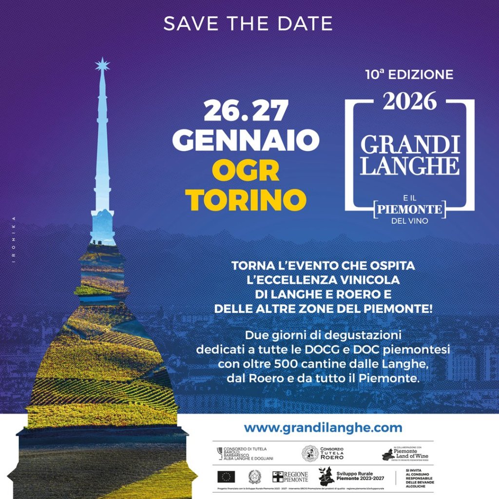 A Torino torna la decima edizione di uno dei più attesi eventi enoici, quali, Grandi Langhe. Avrà luogo nei giorni 26 e 27 gennaio 2026 negli ampi spazi delle OGR – Officine Grandi Riparazioni di Torino. Dietro ai desk d’assaggio ci saranno 515 Cantine, 379 dalle Langhe e dal Roero e 136 dagli altri territori vinicoli della regione. Liete di farvi degustare le nuove annate in anteprima di Langhe e Roero e di altri areali del Piemonte. Ecco gli orari della kermesse: aprirà i battenti alle ore 10:00 per chiuderli alle ore 17:00 in entrambe le giornate. Saranno presenti molti Buyers, Importatori, Ristoratori, Giornalisti e Wine Blogger nazionali ed internazionali. Dalla scorsa edizione ci sarà una sala dedicata alla stampa con servizio sommelier. A mio avviso, è un evento molto appassionante e ben organizzato. Per ogni informazione e per conoscere meglio il programma vi consiglio di visitare il sito di riferimento: http://www.grandilanghe.com.