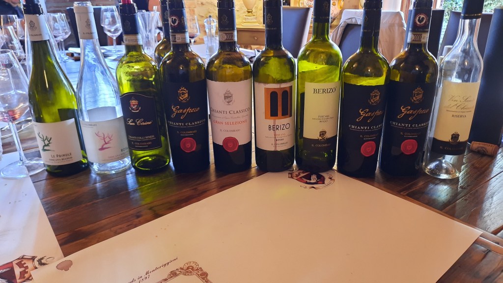 Assieme ad amici con i quali condivido la passione per il nettare di Bacco, mi sono recato presso l’azienda vitivinicola Il Colombaio per una visita e a seguire pranzo con degustazione di prodotti locali, accompagnati dai loro vini. Una realtà situata nella stupenda campagna senese a poca distanza dal Castello di Monteriggioni. Il mio rammarico è quello di aver percorso la strada principale a poca distanza dall’azienda migliaia di volte, senza aver mai svoltato per andarci.